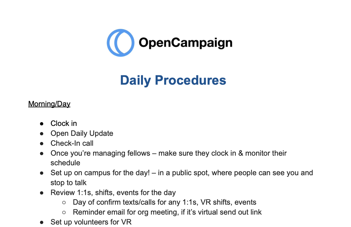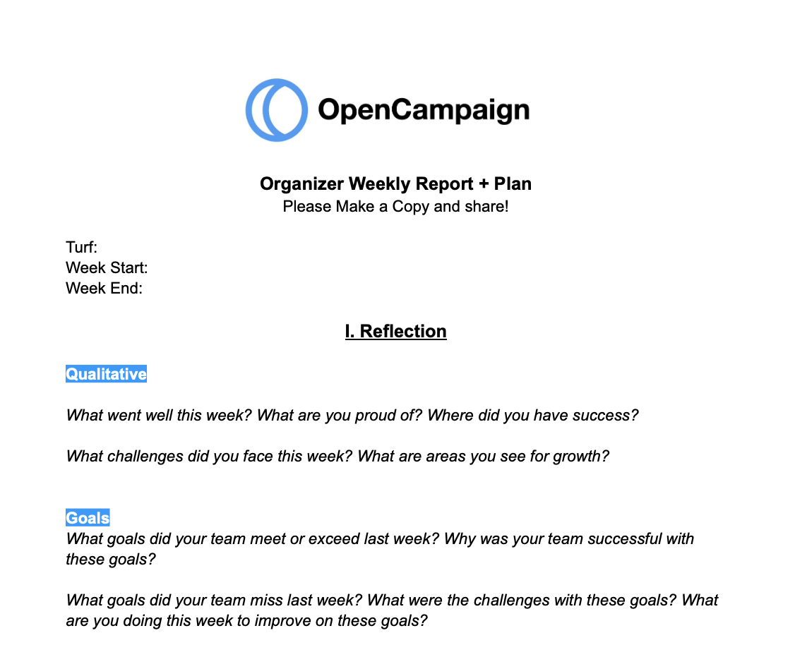 Organizer Goals Weekly Worksheet - OpenCampaign