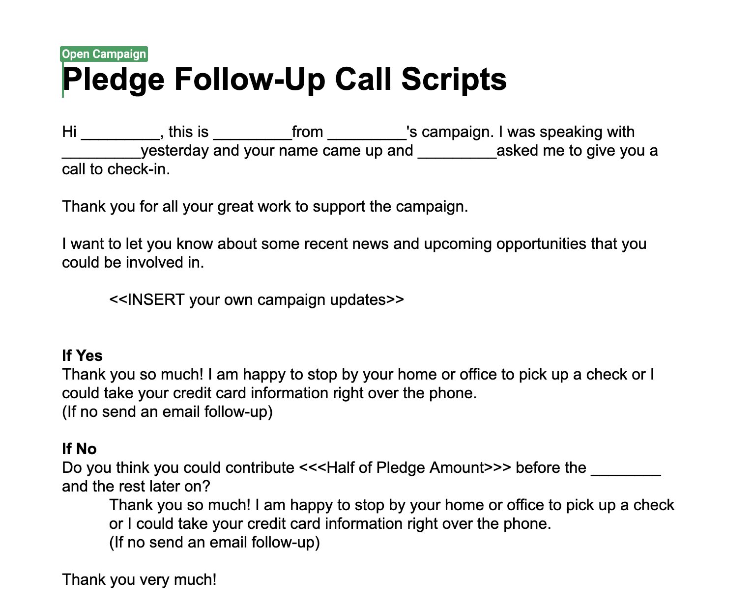 Fundraising: Follow Up Call Script (Pledges) - Kim Kaiser